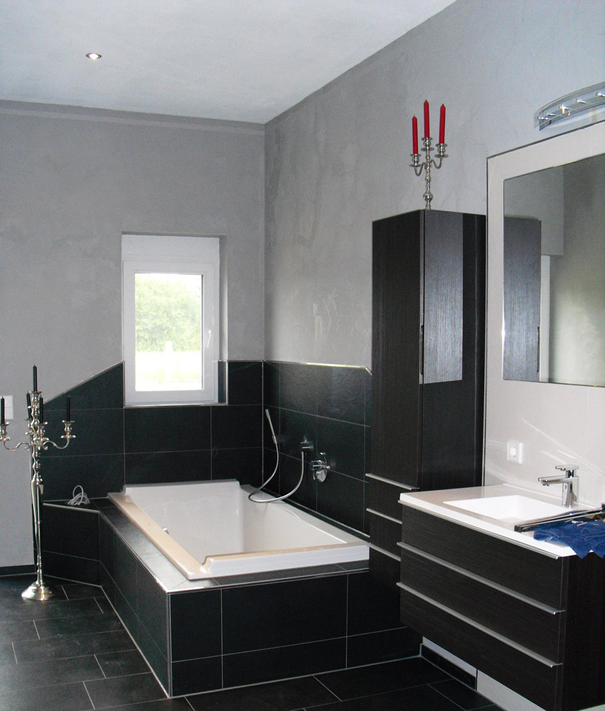 Wandfarbe (dispersion, mineral, kalk) Lack, Lasur, Streichputz Farbberatung Spachtel, Marmorspachtel (Bild 4), Reliefspachtel (Bild 5) Kreatives